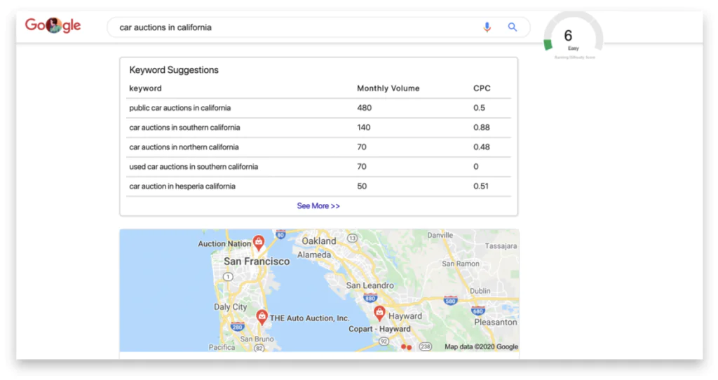 But remember: search for a bunch of “long tail” terms as well. Sure, you might never rank #1 for “car auctions” but you might be able to rank #1 for “car auctions in California.” And you may have even better luck with “car auctions in northern California.”