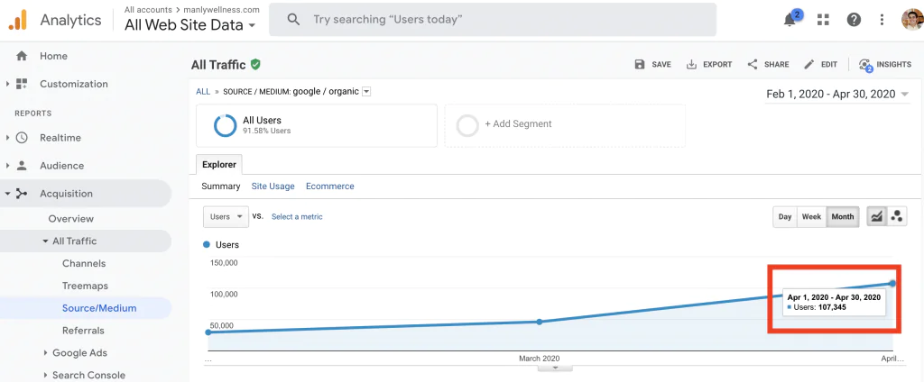 And this past year, just to prove I could do it, I started ManlyWellness and grew it to 107,345 monthly organic visitors in 6 months!